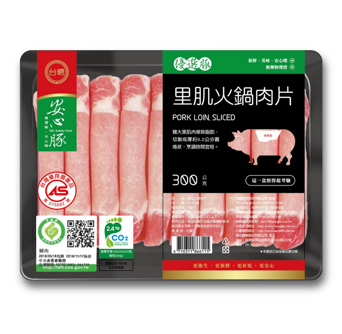 以健康新鮮較嫩的部位肉修除脂肪,切製成每片厚度約0.2公分之圓捲薄肉片,每盒300公克封盒包裝。